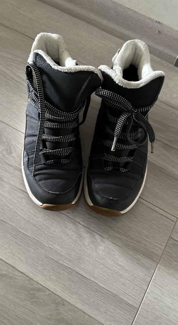 Gri renkte, kauçuk malzemeden yapılmış, velcro ve bağcıklı, trendy günlük stil erkek çocuk botları. Sıcak tutan su geçirmeyen