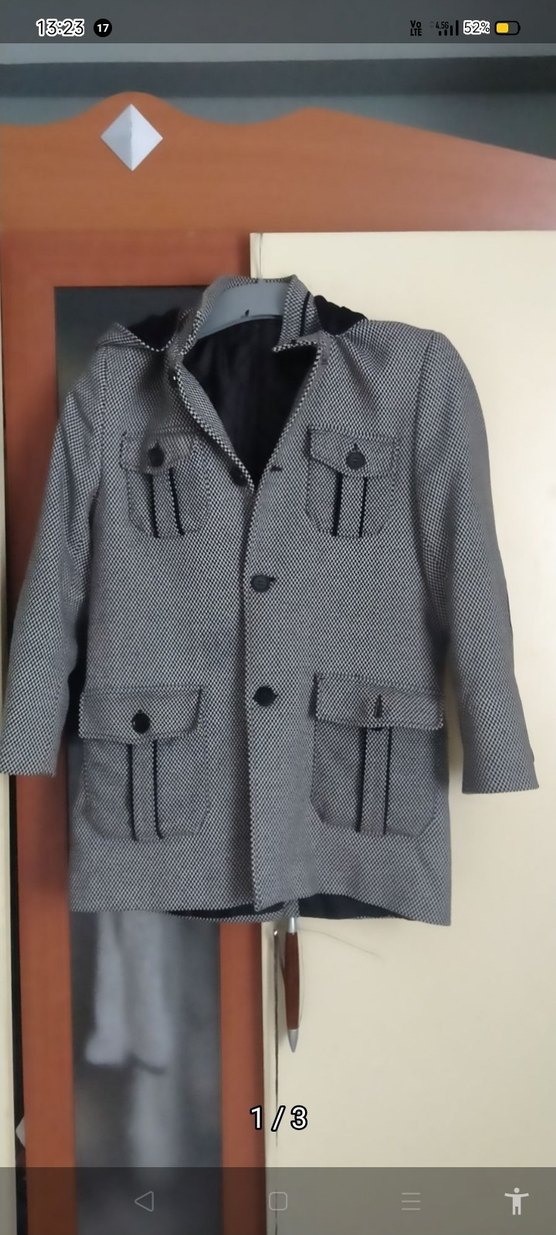 Gri renkte, erkek çocuk kaban.Fazla giyilmedi malum çocuklar çabuk büyüyor.10-11 yaş