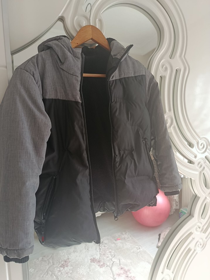 Gri Erkek Çocuk Kapüşonlu Mont