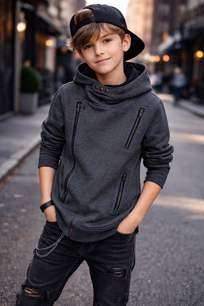 Gri Erkek Çocuk Kapüşonlu Sweatshirt