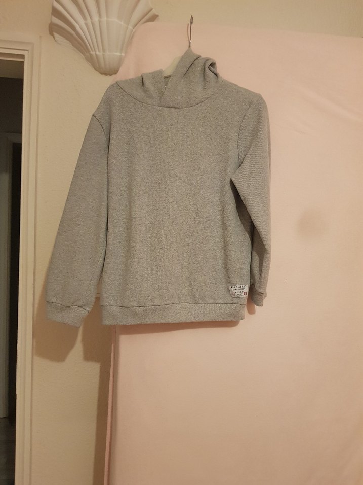 Gri renkli, uzun kollu ve kapişonlu erkek çocuk sweatshirtü, yumuşak ve sıcak kumaştan üretilmiş, bol kesim ve sade sokak stili ile rahat bir görünüm sunar.