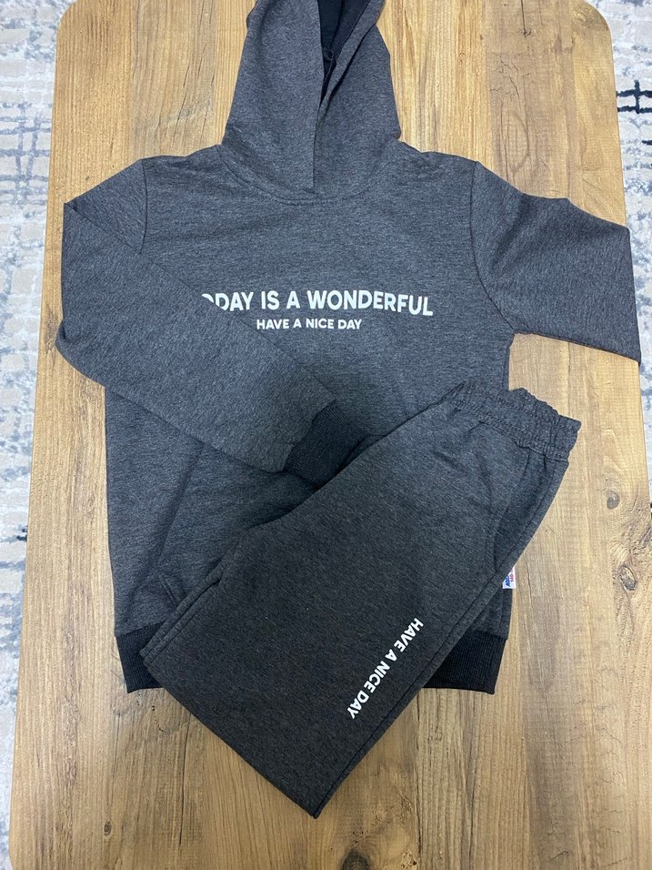 Gri Erkek Çocuk Kapüşonlu Sweatshirt ve Eşofman Takımı