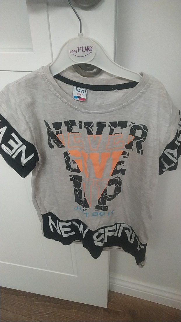 Pamuklu, gri renkli, baskılı ve cırt cırt detaylı, kısa kollu, bisiklet yakalı, salaş kesim erkek çocuk tişörtü.