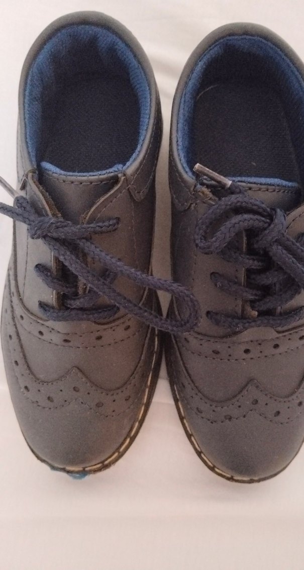 Dayanıklı kauçuk malzemeden yapılmış, tokalı ve bağcıklı lacivert erkek çocuk özel gün ayakkabısı. Sade tasarımlı ve klasik görünümlü bir kez giyildi.