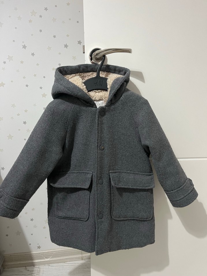 Gri renkli bu erkek çocuk montu, normal kesim ve kürklü kapüşon detayına sahiptir. Yumuşak, sıcak kumaş ve iki büyük ön cep bulunur.