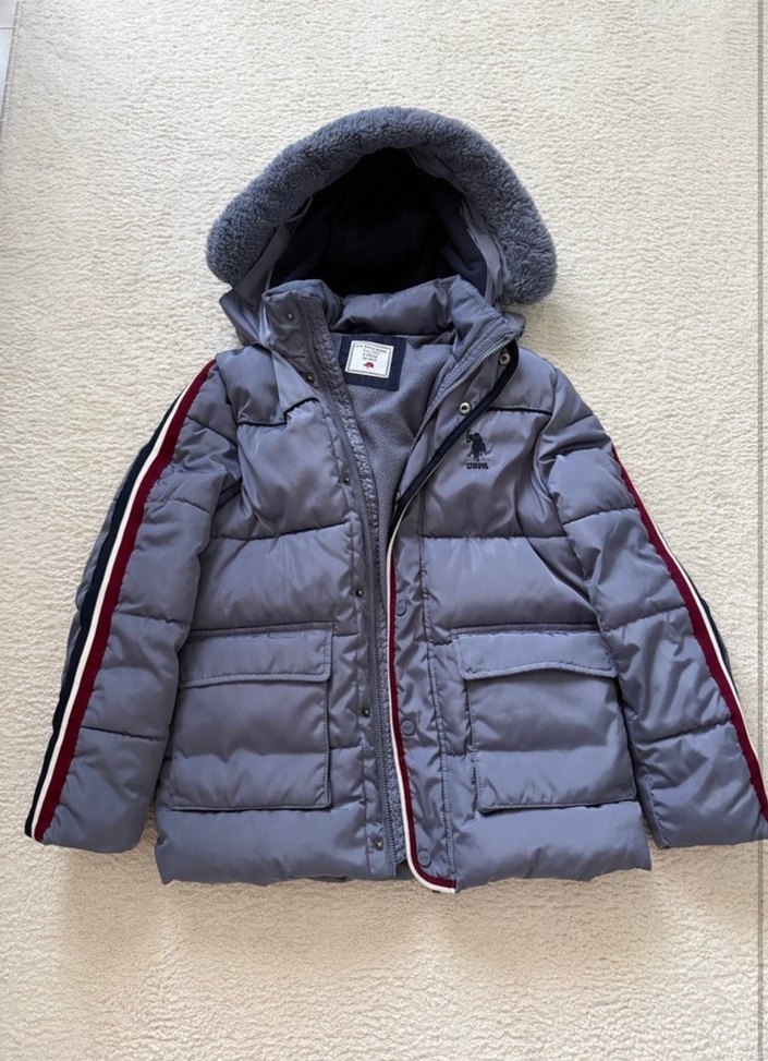 Fitted kesim gri erkek çocuk mont, kürklü kapüşon ve şerit detaylı kollara sahiptir. Yumuşak ve sıcak kumaştan üretilmiştir, sokak modası için uygundur. Oğlum kullanmıştı.küçük geldiği için satıyorum