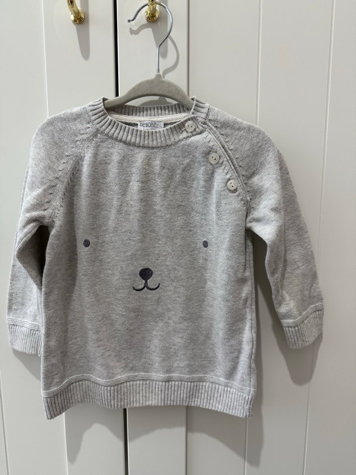 Gri Erkek Çocuk Nakışlı Triko Kazak