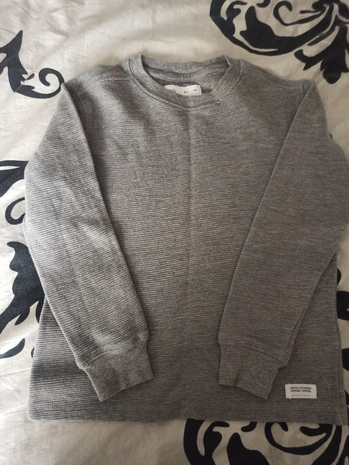 Bu erkek çocuk sweatshirt, yuvarlak yaka ve uzun kolludur. Yumuşak pamuklu, sade gri renktedir.