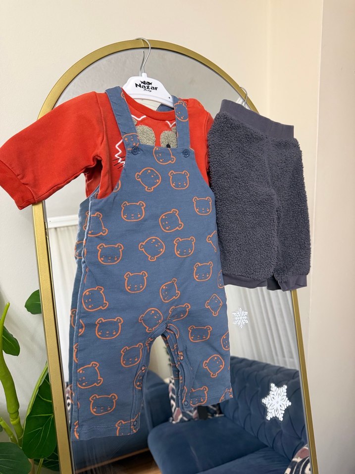 Gri Erkek Çocuk Örme Baskılı Tulum 3 lü set