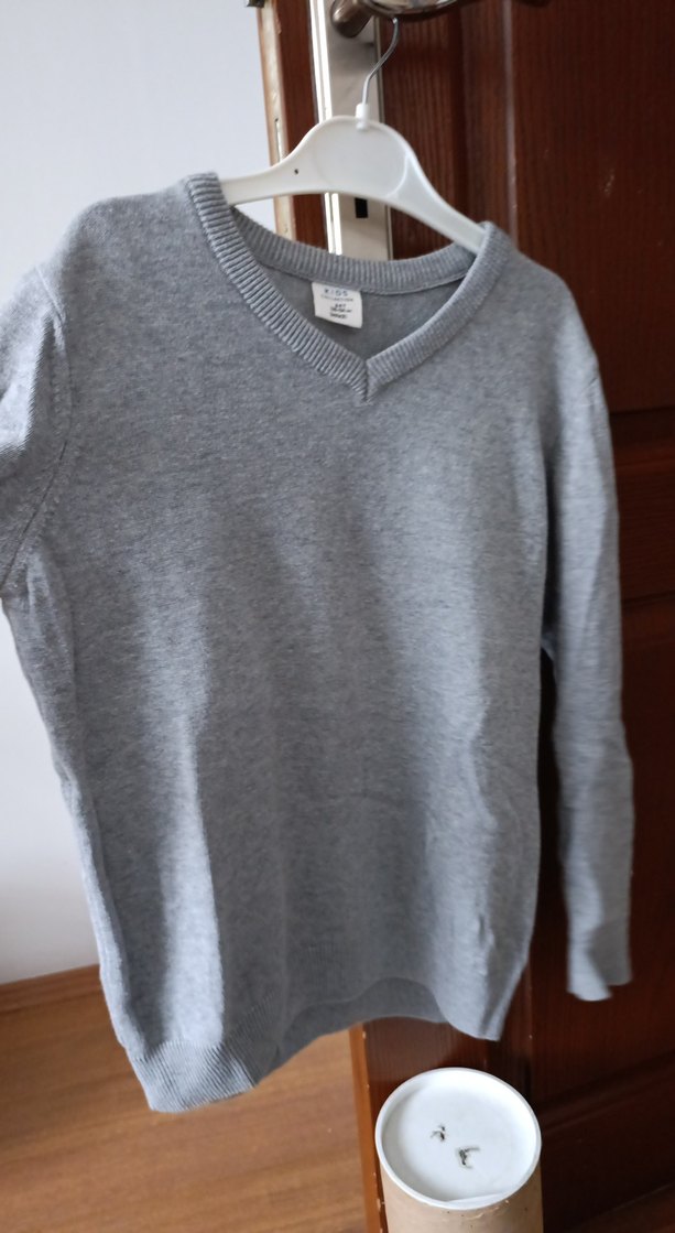 Gri renkli erkek çocuk kazak, pamuklu ve örgü dokulu. Uzun kollu, yuvarlak yaka ve bol kesimle rahat bir kullanım sunar.