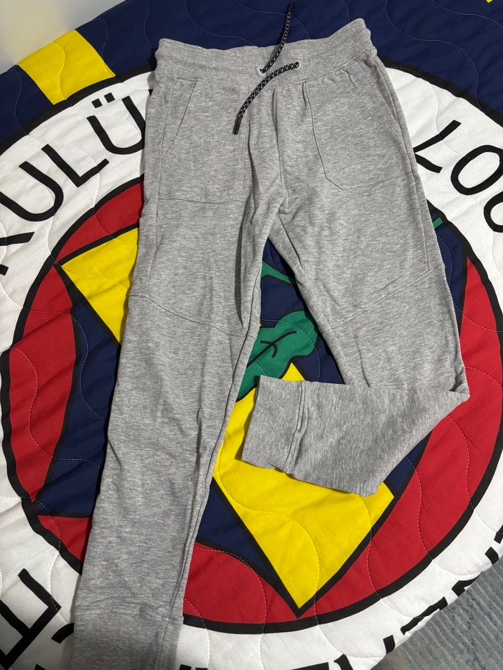 Gri, rahat kesim, yumuşak ve sıcak kumaştan eşofman altı. Ayarlanabilir bağcıklı bel ve lastikli paçalar içerir. Sokak stiline uygun.