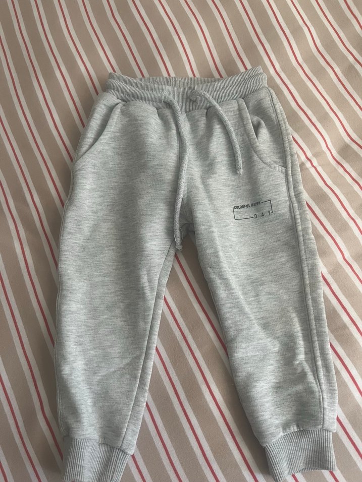 Yumuşak kumaştan, elastik bel ve yan cepli, rahat kesim gri eşofman altı.