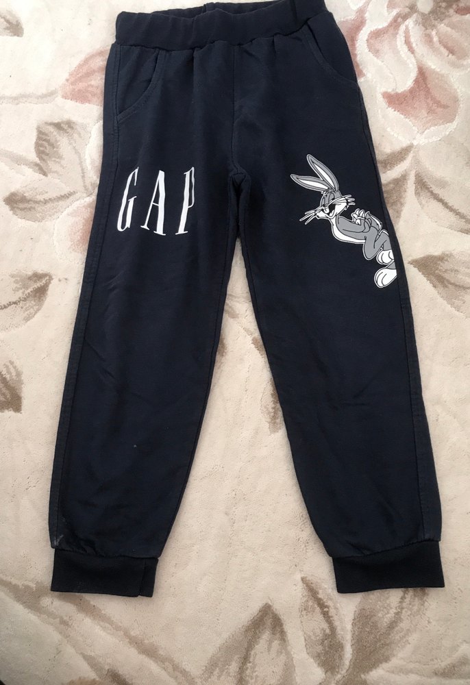 Koyu gri renkli, yumuşak ve sıcak kumaştan yapılmış, rahat kesim erkek çocuk eşofman altı. Lastikli bel ve baskılı tavşan ile GAP logosu bulunur.