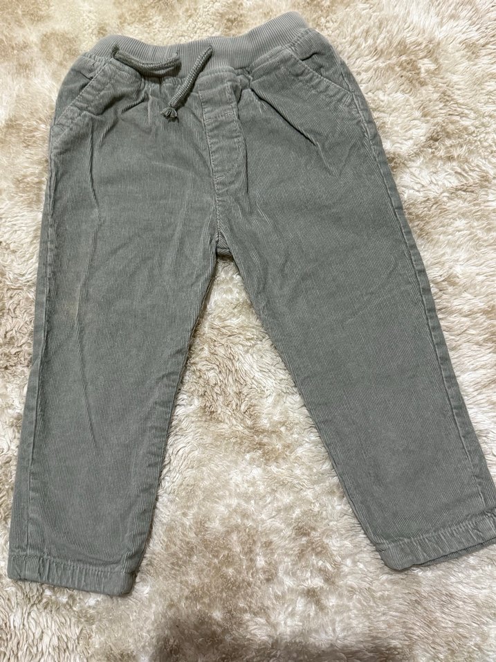 Düğmeli detaylı, gri renk erkek çocuk rahat kesim pantolon. Yumuşak kumaş ve desensiz, günlük kullanım için uygun.