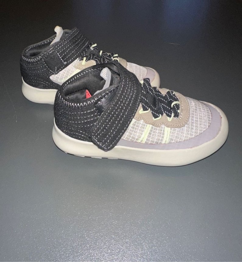 Kreşte giyildi ihtiyaç fazlası 25 no yeni ortopedik foam taban Gri renkli erkek çocuk spor ayakkabısı, Velcro bant ve kauçuk taban ile sokak stilini yansıtır. Trendsetterlar için uygun.