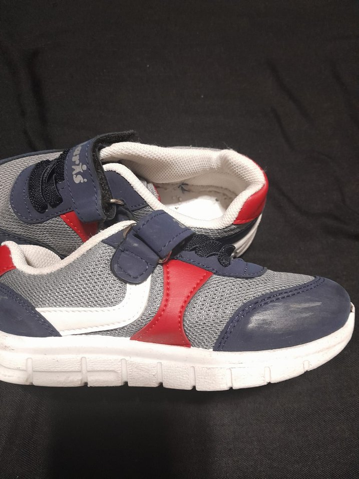Gri renk, Velcro bantlı erkek çocuk spor ayakkabısı. Kauçuk tabanlı, ve sokak tarzına uygun rahat model.