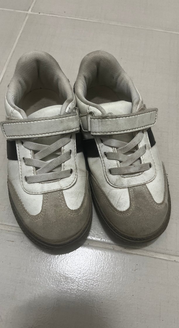 Gri renkli erkek çocuk spor ayakkabısı, cırt cırtlı ve kauçuk tabanlı, sade ve deseniz sokak stili için uygundur.
