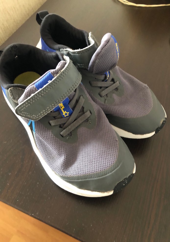 Gri renkli, velcro bantlı erkek çocuk spor ayakkabısı. Kauçuk tabanlı, rahat ve günlük kullanım için uygun.