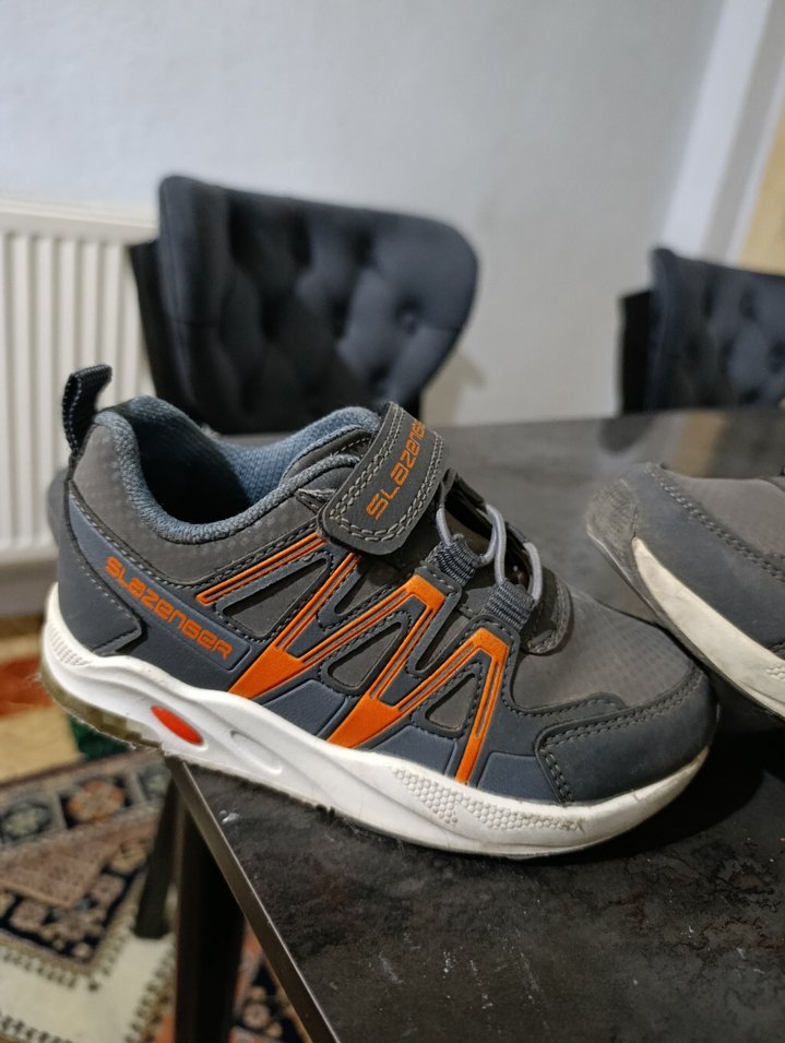 Gri renkte, baskılı desenli erkek çocuk spor ayakkabısıdır. Kauçuk tabanlı ve kolay kapanan cırt cırt bantlıdır. Sokak modasına uygundur.