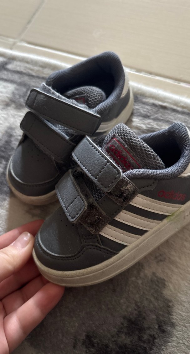 Gri renkli, velcro bantlı erkek çocuk spor ayakkabısı, sokak stiline uygun dayanıklı kauçuk tabanlıdır.