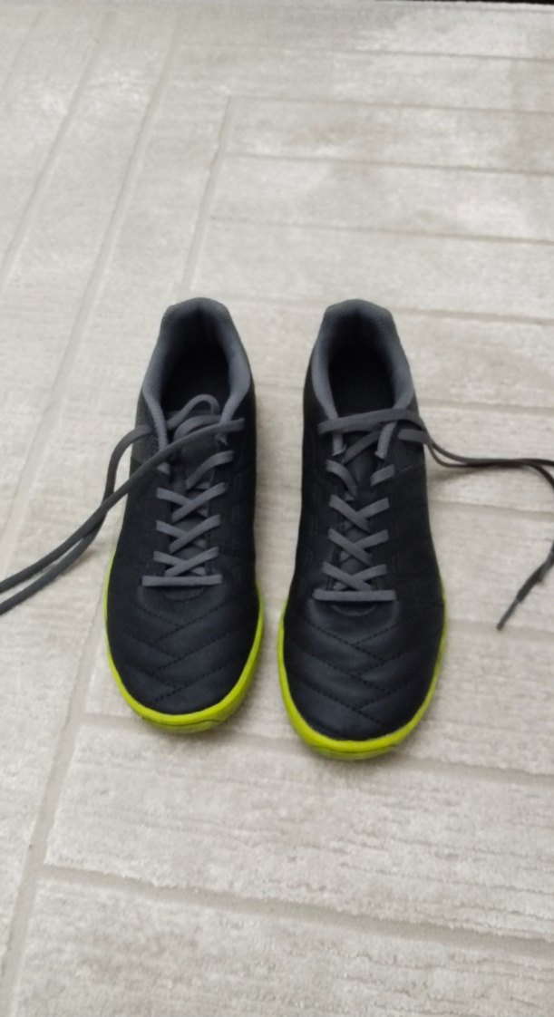 Gri renkli, çağdaş tarzda erkek çocuk spor ayakkabısı. Velcro ve kauçuk tabanlı, rahat ve kullanışlıdır.