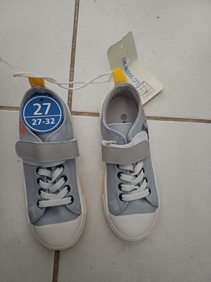 Gri renkli, baskılı erkek çocuk spor ayakkabısı, kolay giyim için cırt cırtlı bantlıdır. Kauçuk tabanlı, sokak stili için uygundur.