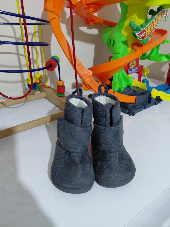 Gri renkli, kaymaz kauçuk tabanlı, cırt cırtlı erkek çocuk botu, renkli ve trend sokak stili görünümü sunar.