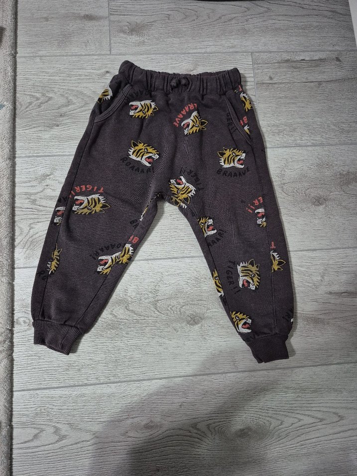 Gri tie-dye desenli, yumuşak ve rahat fleece kumaştan yapılmış, velcro detaylı bol kesim erkek çocuk street wear eşofman.