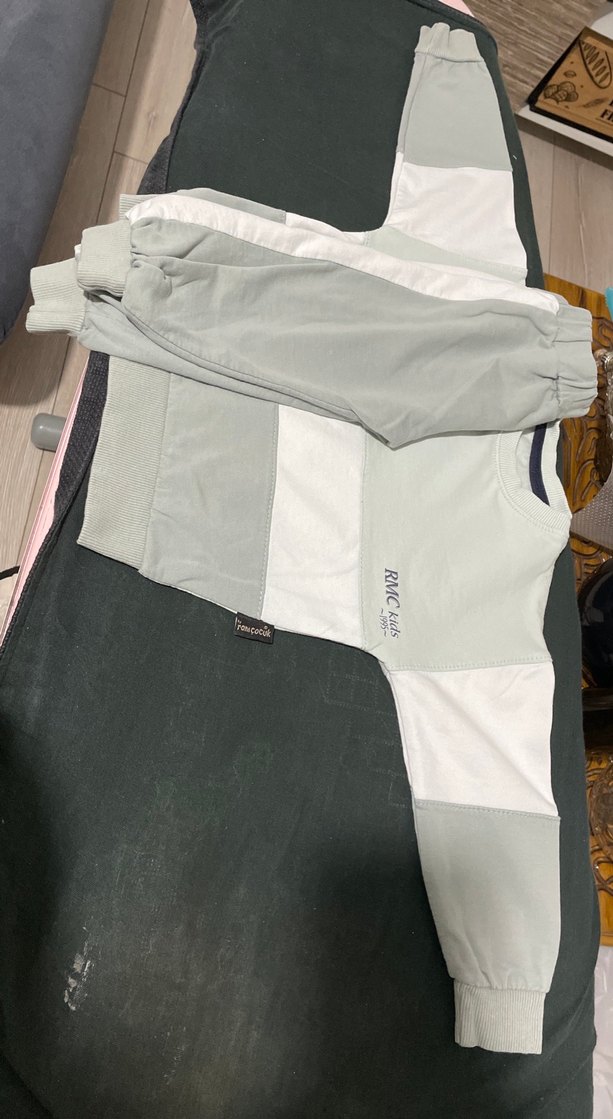 Gri tonlarda, sentetik kumaştan yapılmış, baskılı ve cırt cırt detaylı, regular fit erkek çocuk street wear eşofman takımı. Notched lapel yakaya sahiptir. ♂️