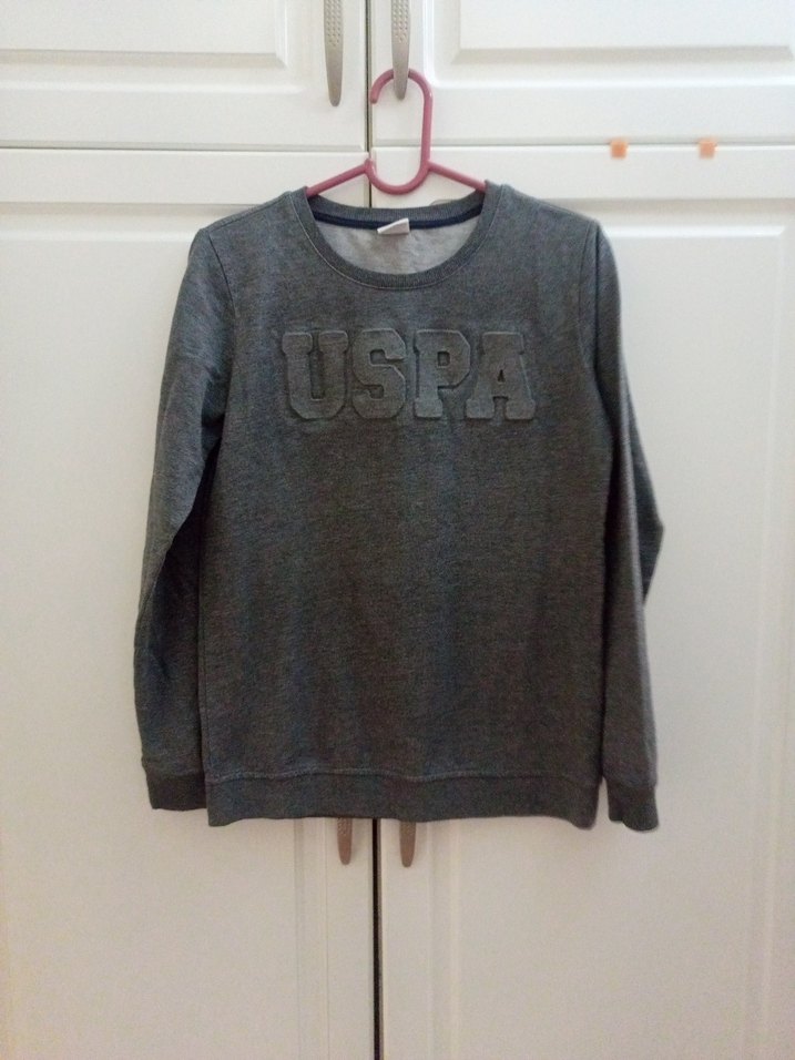 Gri renkli, uzun kollu ve yuvarlak yaka erkek çocuk sweatshirtü. Yumuşak kumaştan kalite uspa... temiz sorunsuz yeni gibi.