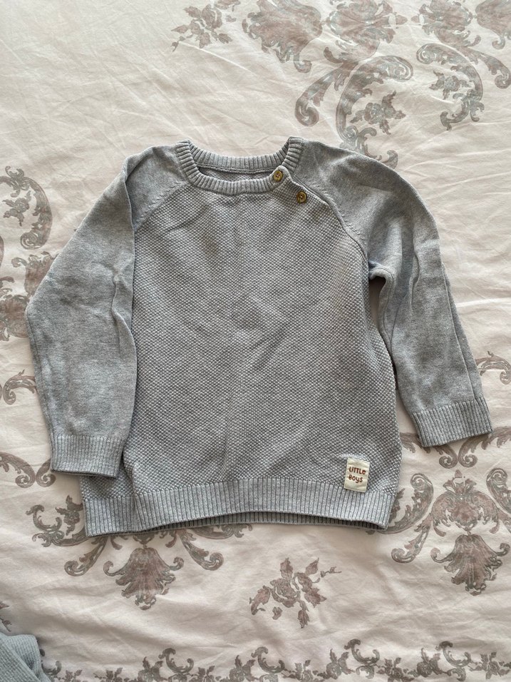 Gri renkli, uzun kollu, yuvarlak yakalı ve bol kesim erkek çocuk triko kazağıdır. Örgü kumaştan yapılmış, desensiz ve sade bir tarza sahiptir.