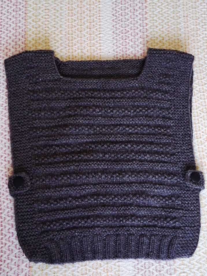 Gri renkli, triko örme erkek çocuk süveter. Bisiklet yaka, kolsuz ve bol kesimdir. Düz, desensiz ve rahat dokuludur. istenilen renk beden örülür ölçüleri eni32 cm boyu37 cm