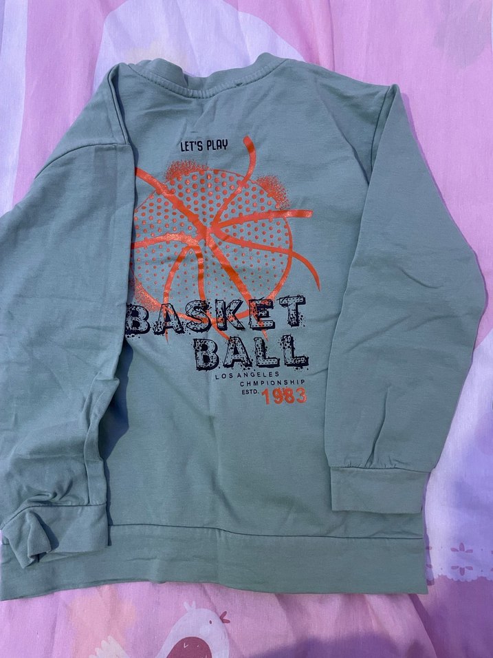 Gri renkli, uzun kollu ve bisiklet yaka erkek çocuk sweatshirtü. Baskılı rahat kesim, kalın değildir. Hediye gelmiştir küçük geldiği için pek giyilmedi sadece 2 kez yıkandı. 9 yaş yazıyor ama oğlunuz uzun boylu ise 7 yaştan büyük bir çocuğa olmaz. 6-7 yaş için uygundur diyebilirim.