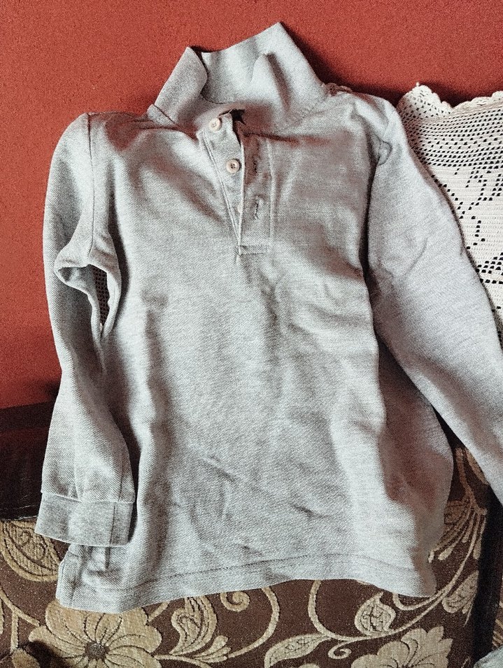Gri renkli, uzun kollu, düğmeli yakalı ve bol kesim keten erkek çocuk sweatshirtü. Normcore tarzıyla sade ve rahat bir görünüme sahiptir.
