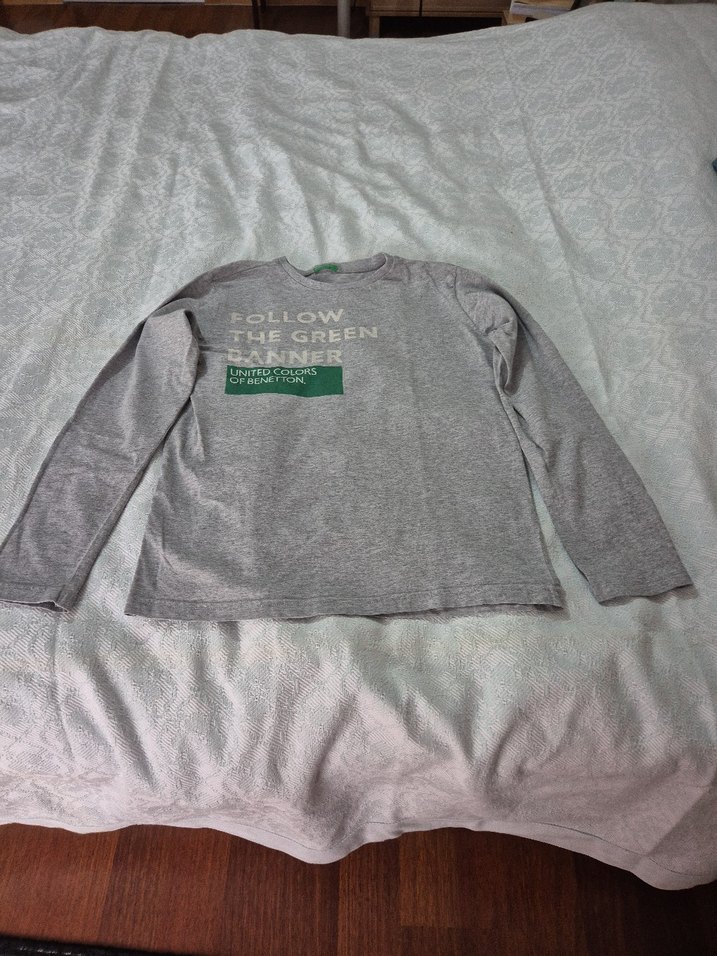 Erkek çocuklar için gri, uzun kollu, yuvarlak yakalı, pamuklu kumaştan bol kesim tişört. Üzerinde baskılı desen bulunur, sokak stili için uygundur. 11-12 yaş. Boyu 58 cm., eni 43 cm.