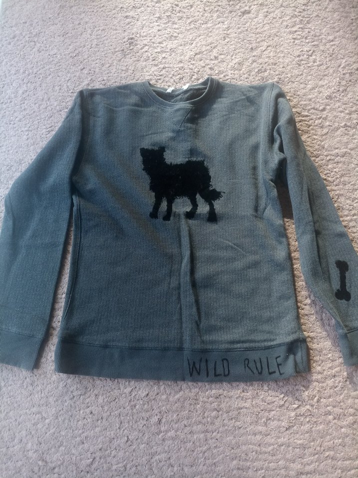 Gri renkli, uzun kollu ve bol kesim erkek çocuk sweatshirtü. Yumuşak dokulu, baskılı ve kürk detaylı, 'WILD RULE' yazılı sokak tarzı ürünü.