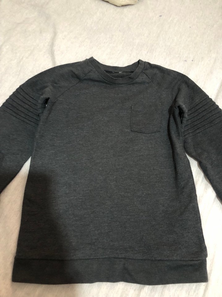 Gri renkli, keten kumaştan yapılmış, uzun kollu ve bisiklet yaka erkek çocuk sweatshirtü. Göğsünde küçük cep bulunur, rahat kesim ve desen yoktur.