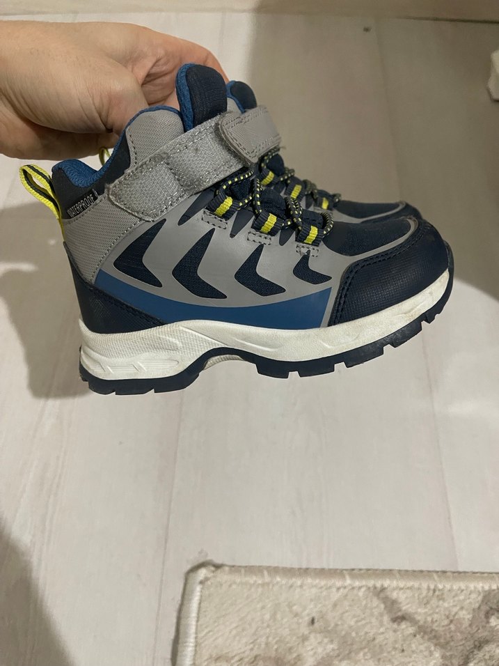 Gri yılan desenli, lastik malzemeden yapılmış erkek çocuk botları. Velcro bant ile kolay kapanır, trend sokak stili için uygun.
