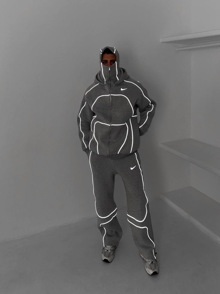 Gri renkli, dar kesim erkek eşofman altı, reflektör detaylarıyla şık ve rahat bir dış mekan görünümü sunar. Yumuşak kumaştan üretilmiştir.