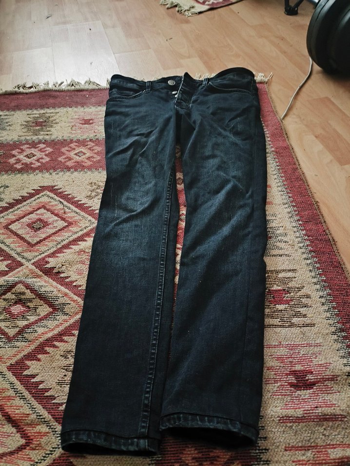 Kemer detaylı, bol kesim, koyu gri renk erkek denim jean. Günlük kullanıma uygun midi boy, rahat ve şık.