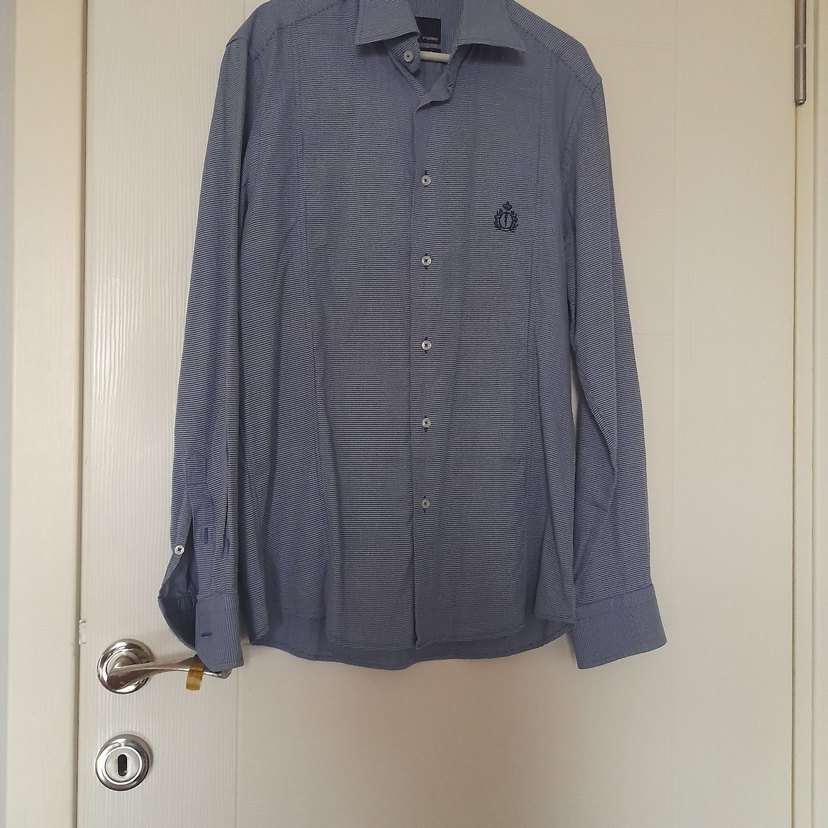 Gri renkli erkek denim gömlek, düğmeli ve yaka detaylıdır. Uzun kollu, regular fit kesime sahip, iş veya günlük kullanıma uygundur.