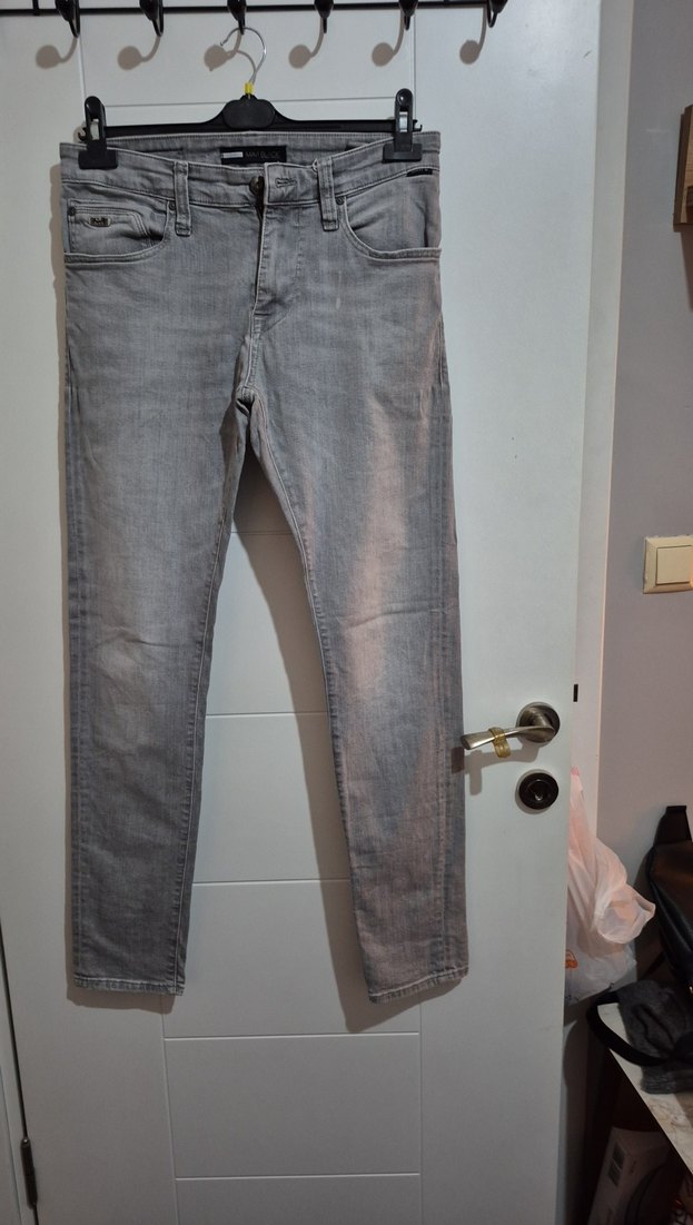 Gri renkli, düğmeli erkek denim jean pantolon. Normal boy ve regular fit kesime sahip, günlük rahat sokak stili için uygun.Mavi Jeans Beden 30/32 iade kabul etmiyorum