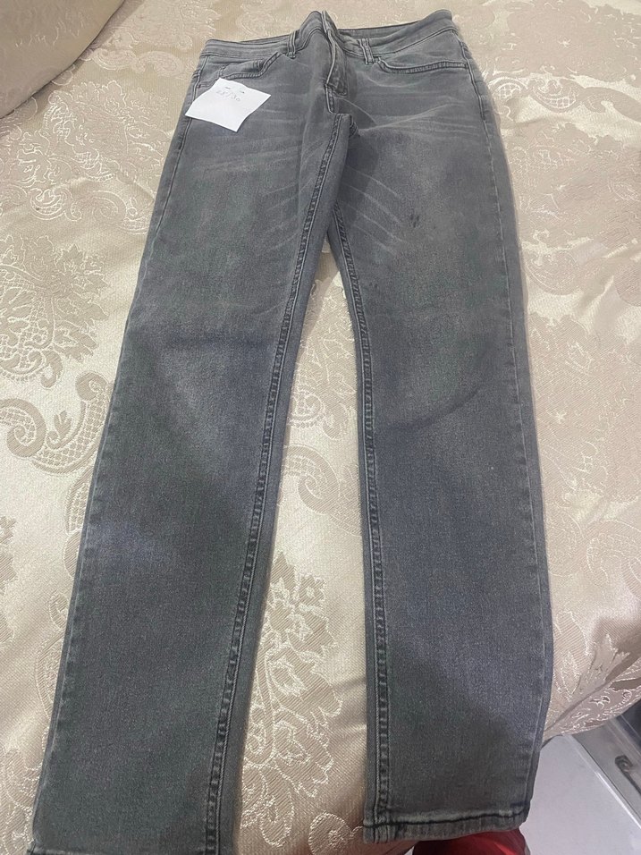 Gri renkli, normal boy ve regular fit kesime sahip denim jean pantolon. Bağcıklı detay içerir, günlük ve sokak stiline uygundur.28/30 bedeni