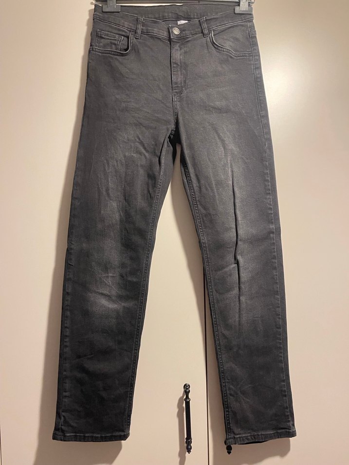 Gri renkli, normal boyda ve regular fit erkek denim pantolon. Günlük kullanım için uygun, rahat ve şık bir sokak stili sunar.