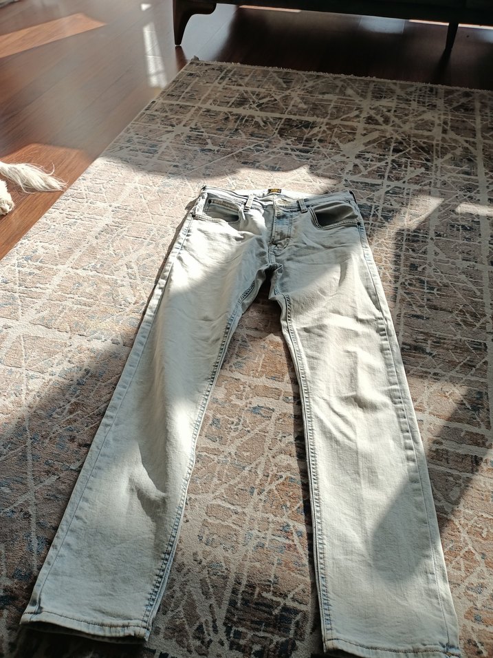 Gri renkte, normal boy ve regular fit kesime sahip denim pantolon, günlük sokak stili için rahat ve şık bir tercih sunar. W29/L30