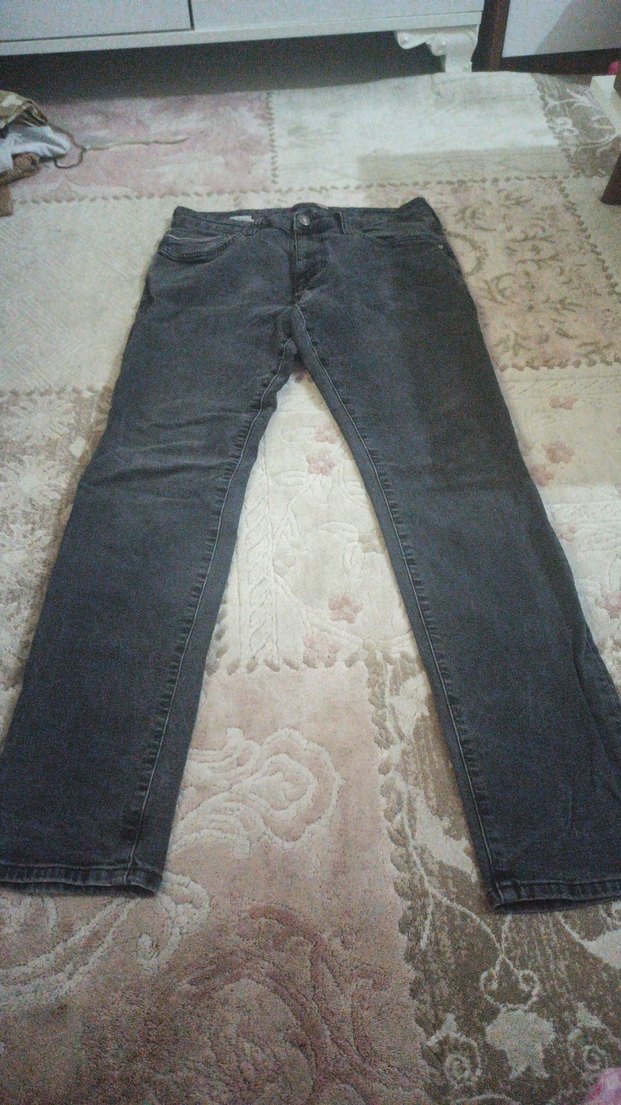 Gri renkte, normal boy ve regular fit kesime sahip erkek denim pantolon. Tokalı detay içerir, gündelik kullanıma uygundur.