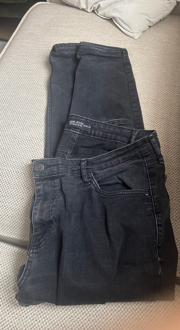 Gri erkek Denim Pantolon Bel Tokalı