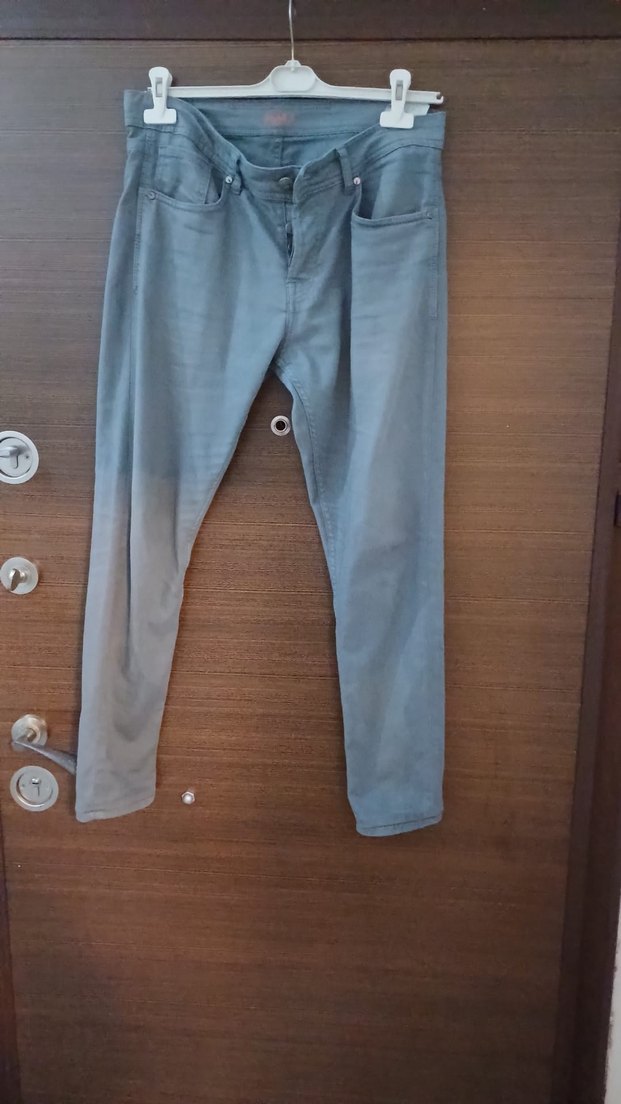 Gri Erkek Denim Pantolon, Düğmeli, Normal Boy