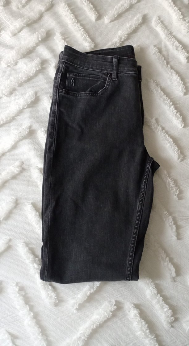 Gri renkli, fermuarlı detaylı, normal rahat ve normcore tarzda kadın denim pantolon. Erkekler içindir