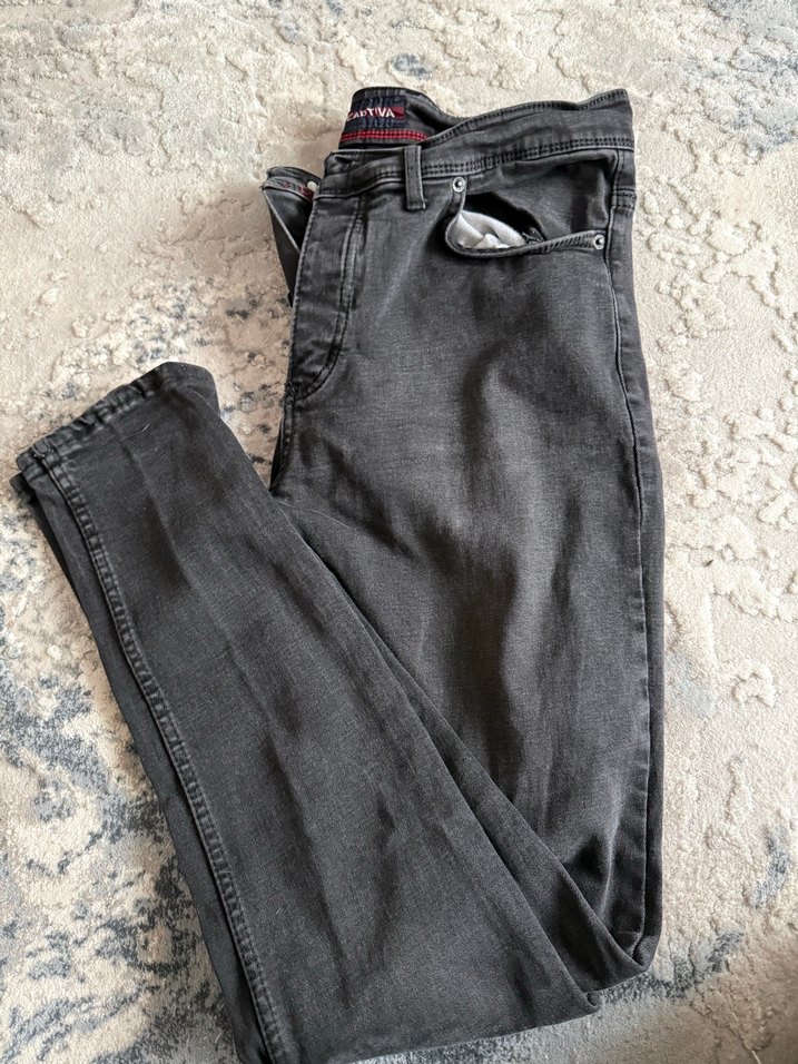 Gri Erkek Denim Pantolon, Kemer Detaylı